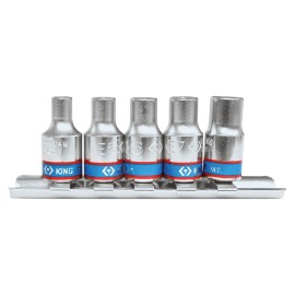 KING TONY - Jeu de 5 douilles 1/4" TORX E4-E5-E6-E7-E8 sur rail - 5 pièces