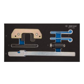 Ce kit contient la platine de réglage/ blocage d'arbre à came, le levier tendeur, la pige de blocage de galet tendeur et la pige de positionnement PMH (point mort haut)..