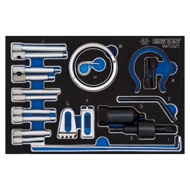 - Ce kit contient des outils spécifiques pour le volant moteur et une goupille d'arrêt pour l'arbre à cames / le vilebrequin..