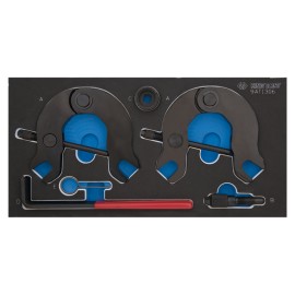 Ce kit contient l'outil de blocage d'arbres à cames, la pige de maintien du galet tendeur, et l'outil de blocage vilebrequin..