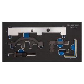 Ce kit contient une platine d'alignement VANOS, un outil de calage d'arbres à cames, une pige de maintien volant moteur, et un outil de préinstallation du tendeur de chaîne..