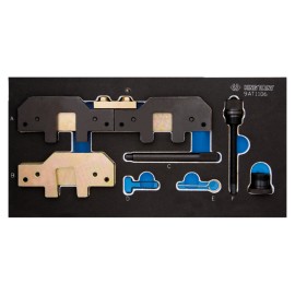 Ce kit contient une platine de réglage arbre à came, une platine d'ajustement, un outil de préchargement, une pige de verrouillage volant moteur et des piges de maintien tendeur..