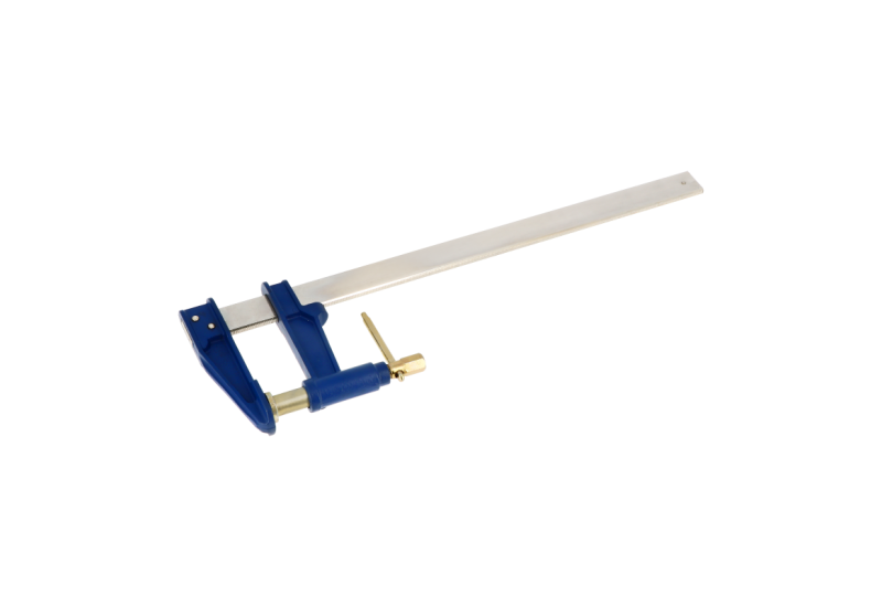 Le secret réside dans la section du fer : 35 mm de large par 8 mm d'épais. Sur une portée courte de 60cm, ce rail offre une résistance mécanique exceptionnelle. Il permet d'appliquer des forces de serrage très élevées (nécessaires pour redresser des planches gauchies ou assurer un collage panneaux parfait) sans que l'outil ne se déforme.