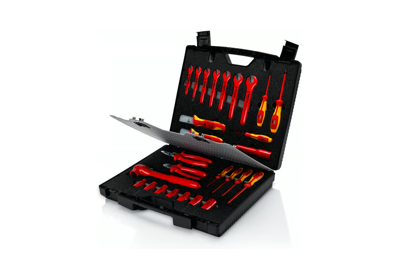 Coffret compact conçu pour les travaux sur installations électriques, équipé d’un assortiment d’outils isolés. Organisation interne par plateau en mousse avec empreintes pour un maintien net et une identification rapide des emplacements.