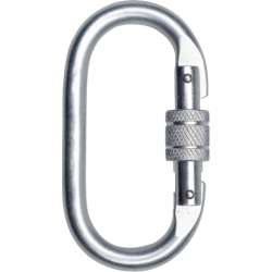 - Avant chaque utilisation, vérifiez que le doigt du mousqueton est complètement fermé et que la vis est serrée à fond contre le corps du mousqueton. Tentez d'ouvrir manuellement le doigt pour confirmer que le verrouillage est actif. Inspectez également l'état général du mousqueton : absence de déformation, de corrosion, de fissure et lisibilité du marquage. Tout mousqueton présentant un défaut doit être immédiatement retiré du service.