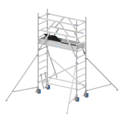 Le modèle RS4S075X185X200 est spécifiquement dimensionné pour les travaux de second œuvre nécessitant mobilité et rapidité. Avec sa largeur étroite de 0,75m, il est parfaitement adapté aux espaces restreints, couloirs ou travaux d'intérieur. Sa hauteur de plateforme d'environ 2,00m permet d'atteindre une hauteur de travail confortable de 4,00m, idéale pour la peinture de plafonds standards, l'entretien CVC, l'électricité ou la pose de faux-plafonds. Grâce au système 4S, une seule personne peut monter et déplacer la structure en toute conformité.