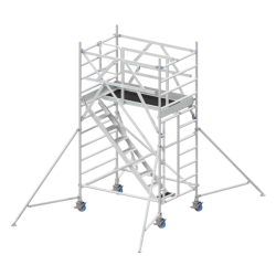 L'utilisation de la tour d'escalier RS 4S (Réf RS4S135X185X200C) est particulièrement recommandée pour les chantiers de longue durée nécessitant des allers-retours fréquents. Là où un échafaudage classique oblige à une ascension verticale physique et parfois périlleuse avec du matériel, la version Comfort permet de monter "comme dans des escaliers". C'est l'équipement idéal pour les plaquistes, électriciens ou peintres devant manipuler des charges encombrantes ou lourdes en hauteur (environ 4,00m de hauteur de travail estimée pour une plateforme à 2,00m). Elle réduit drastiquement la fatigue de l'opérateur et augmente la productivité journalière.