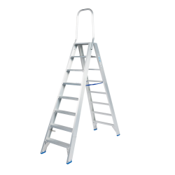 L'escabeau Solide DT08BVA est un géant de la stabilité conçu pour les professionnels qui doivent intervenir à grande hauteur sans installer d'échafaudage. Ce modèle double accès 2 x 8 marches combine une portée exceptionnelle avec le confort légendaire de la marque belge. Grâce à son revêtement en polyester gris, il offre une prise en main sûre, non salissante et tempérée, même en extérieur. Équipé d'un garde-corps fixe obligatoire sur de nombreux sites, il est l'allié incontournable des mainteneurs industriels et des électriciens exigeants.