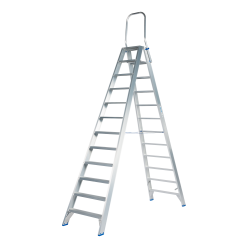 - Double Accès : Permet de grimper des deux côtés (selon configuration) ou d'approcher la zone de travail sans avoir à retourner l'escabeau intégralement.