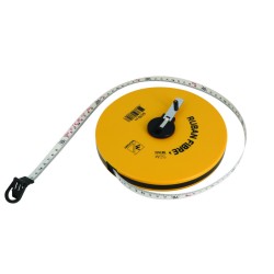 Si vous travaillez souvent dans la boue ou sous la pluie (paysagistes, VRD), c'est le modèle qu'il vous faut. Le boîtier fermé évite que la terre ne rentre dans le mécanisme, et la fibre de verre se nettoie d'un coup de chiffon humide. 50 mètres est la longueur standard polyvalente. C'est moins fragile qu'un ruban acier qui plie irrémédiablement si on marche dessus.