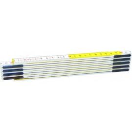 - Double mètre en bois fond jaune (embouts et ressorts laitonnés) ou Double mètre plastifié : structure en bois encapsulé plastique.