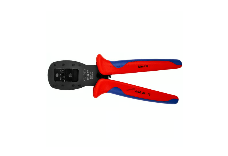 Cette pince est optimisée pour les spécifications techniques des connecteurs Mini-Fit®. Pour d'autres gammes comme les Micro-Fit ou D-Sub, Knipex propose d'autres références (ex: 97 54 25 ou 97 54 24) avec des empreintes dédiées.