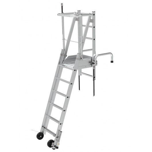 Ce modèle est indispensable pour les phases de coffrage et de banchage. Contrairement à une échelle classique, la Prémur est une véritable échelle plateforme conçue pour s'amarrer solidement aux structures en cours de construction grâce à ses crochets larges. Elle excelle également dans les environnements complexes : ses pieds réglables permettent de rattraper les niveaux, transformant l'équipement en une plateforme escalier stable, même sur des sols accidentés ou dans des cages d'escalier. C'est l'outil de référence pour passer d'un niveau à un autre en toute sécurité sur un chantier de gros œuvre.