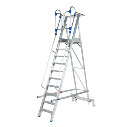 La plate-forme mobile pliable SOLIDE PMP10ZVD est une prouesse d'ingénierie destinée aux professionnels devant intervenir à 4,50 mètres de hauteur. À ce niveau d'élévation, la sécurité n'est pas une option. Ce modèle 10 marches intègre le système de portillon de sécurité auto-fermant (ZVD), garantissant que l'opérateur est systématiquement protégé contre la chute arrière, sans aucune manipulation de sa part. C'est l'outil ultime pour combiner la hauteur d'un échafaudage avec la rapidité de déploiement d'une échelle.
