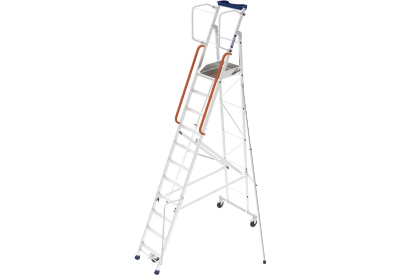 Sur la gamme ERM, l’approche est claire : plan de support vertical pour un accès frontal au rayon, marches antidérapantes, et tablette intégrée pour déposer des colis. Cela répond aux contraintes terrain : enchaîner des allers-retours, garder les mains disponibles, poser et reprendre sans “équilibre précaire”.