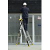 Escabeau 5 en 1 en aluminium très pratique sur tous les chantiers grâce à ses 5 fonctions: escabeau, échelle d'appui, échelle extensible, rattrapage de niveau et écarteur de mur.