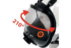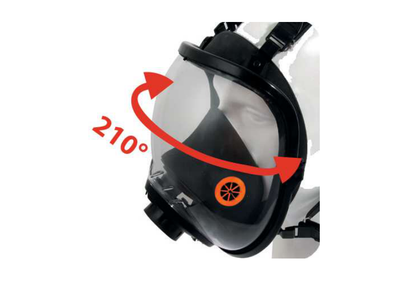 Le champ de vision de 210° est l'une des caractéristiques maîtresses de ce masque complet : il offre une visibilité périphérique nettement supérieure aux masques complets standards, réduisant la fatigue visuelle et améliorant la sécurité lors des déplacements en environnement industriel. La jupe faciale en silicone assure un étanchéité et une durabilité supérieures à celles du caoutchouc naturel, avec une meilleure résistance aux produits chimiques agressifs et une tolérance améliorée pour les peaux sensibles. Le système Rotor® breveté remplace les harnais à sangles traditionnelles par un mécanisme de molette permettant un ajustement précis, rapide et répétable — utilisable avec des gants épais, ce qui constitue un avantage décisif dans les environnements chimiques ou à basses températures. La certification EN 136 Classe 3 valide la résistance du corps du masque à la chaleur rayonnante et à la flamme, indispensable pour les applications en industrie chimique, pétrochimie et maintenance sur équipements chauds. Le raccord filtre EN 148-1 garantit la compatibilité avec l'ensemble des cartouches filtrantes du marché répondant à ce standard.