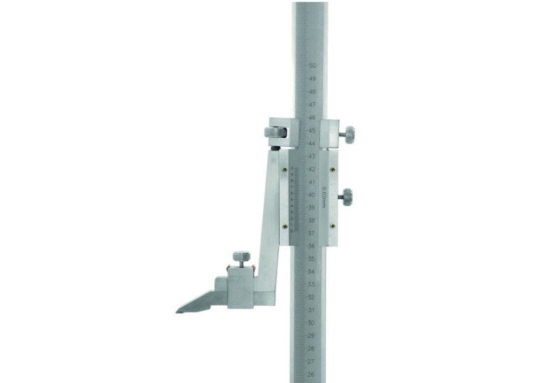 - Stabilité Maximale : Base prismatique robuste en fonte assurant un appui parfait sur le marbre ou la pièce à tracer.