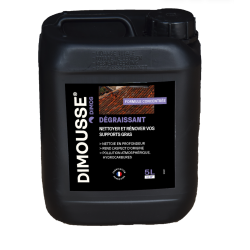 - DIMOUSSE Dégraissant concentré possède un excellent pouvoir mouillant et dégraissant, ce qui lui permet d’éliminer la graisse et autres salissures grasses.